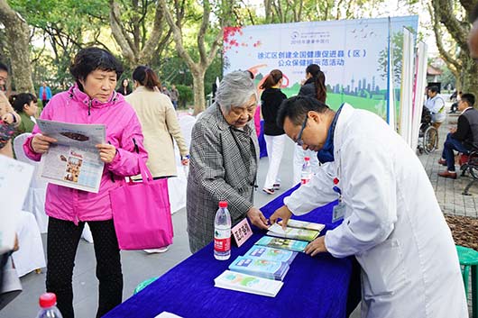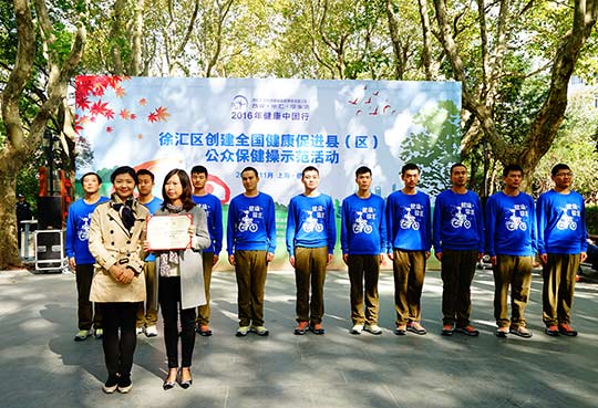 为进一步开展2016年健康中国行宣传,同时推进徐汇区全国健康促进县(区)创建工作,在上海市健康教育所指导下,徐汇区疾控中心结合健康教育与健康促进示范基地项目,2016年11月11日,在襄阳公园,举办了“2016年健康中国行:徐汇区创建全国健康促进县(区)公众保健操示范活动”。上海市健康教育所丁园所长、徐汇区疾控中心党总支王现书记以及上海市健康教育所控烟与行为干预部陈德部长出席了本次活动,并担任比赛评委。参加本次公健操展演的队伍为13家徐汇区健康促进示范基地成员单位,同时参与活动的还有各街镇社区卫生服务中心的健教干部以及湖南街道健康促进志愿者。